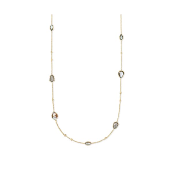 With repeating stone accents in teardrop shapes, this Long strand necklace adds an interesting element to any outfit.